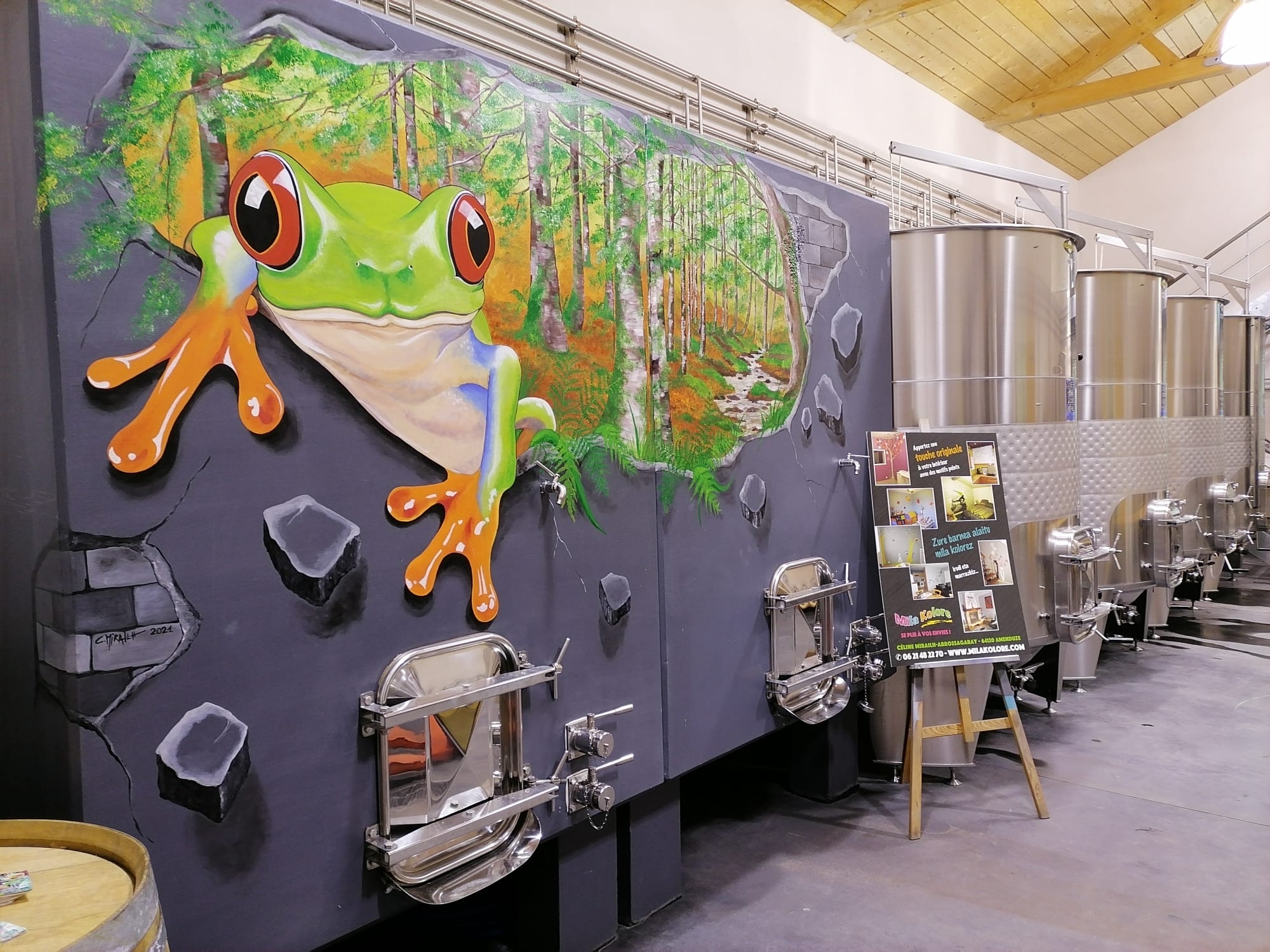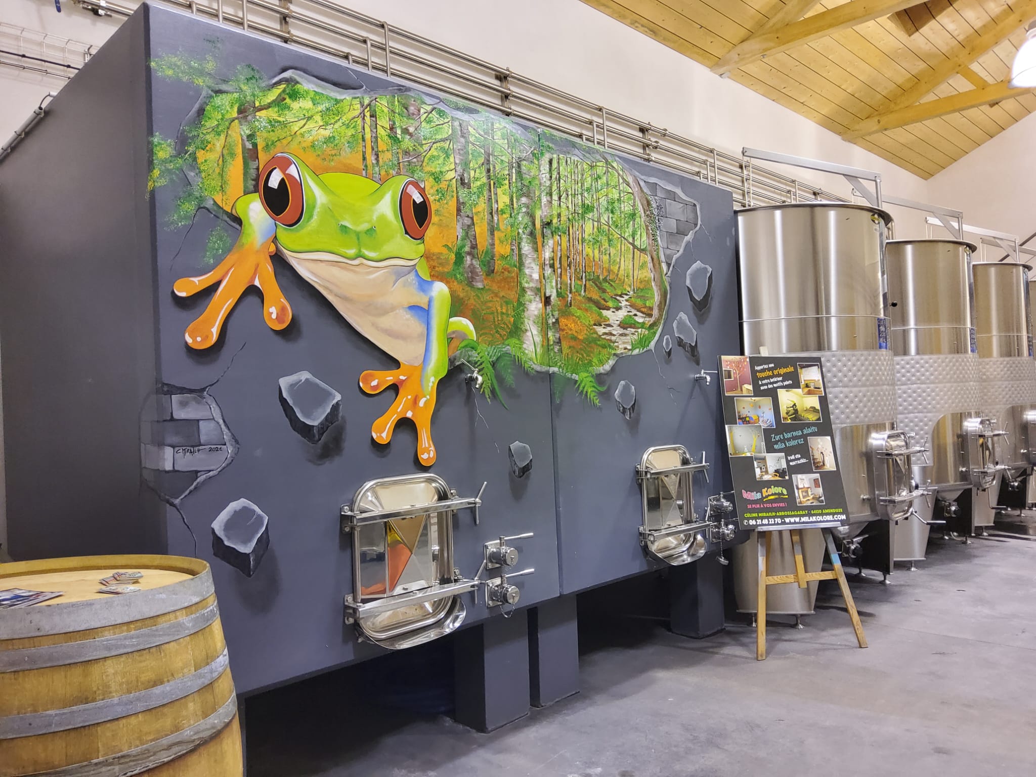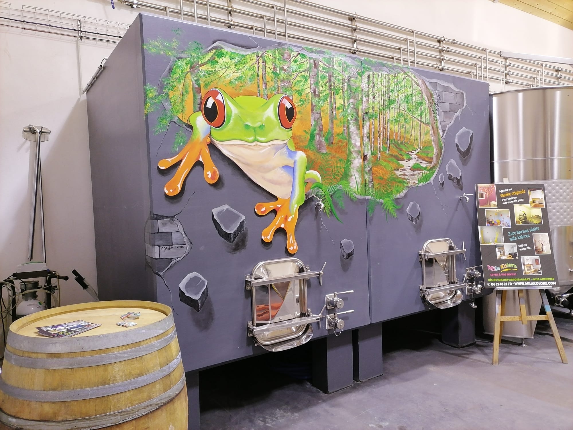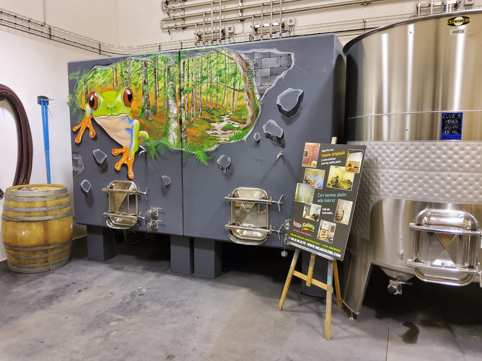 Peinture murale. Cuve de vin maison Bordaxuria à Ispoure